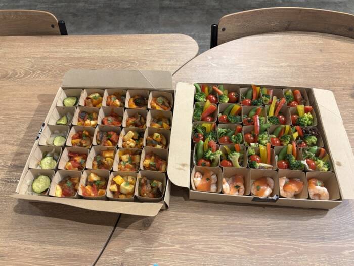 一人ずつの小分けになっているBOXだったので、時間がない人も持ち帰ってもらうことができました。冷めていてもおいしいメニューで、適度なボリュームもあって、みんなに好評でした!また利用したいと思うサービスでした。