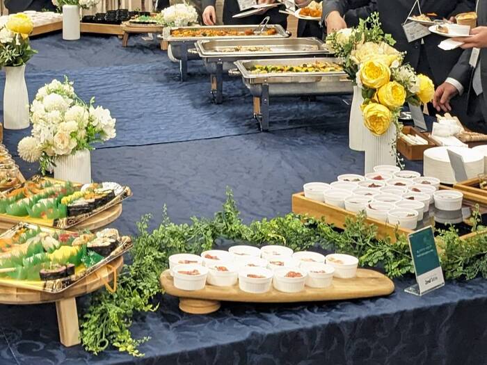 【ご負担をお掛けしないオペレーションと経験豊富なサービススタッフ】当日は御料理のご提供だけでなく、パーティー会場の設営および撤収作業・現状復帰にいたるまで全て弊社が行います。またパーティー中も、経験豊富なスタッフがサービスを行いますので安心してお楽しみ頂けます。また温製料理はアツアツでご提供いたしますのでぜひ一度ご利用下さい。