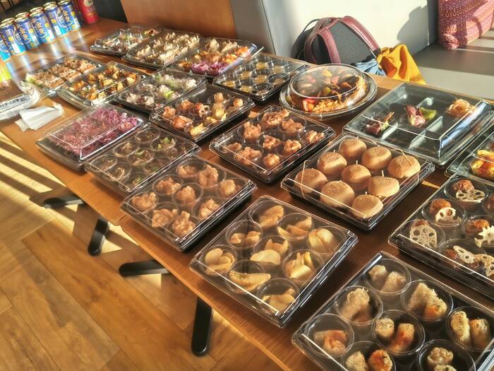 小分けで取り分けやすく、見た目もとてもきれいでした。小さいハンバーガーが少し硬かったのが残念でしたが、全体的においしく、皆さん満足していました。会話も弾む素敵なケータリングでした。