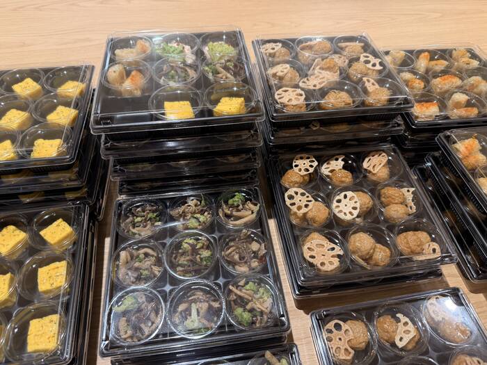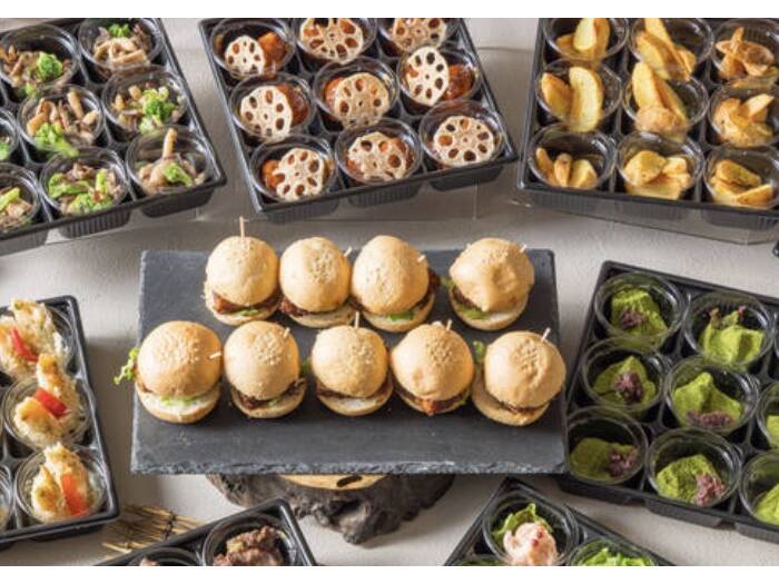 年齢層が高めの為、和食内容で手に取りやすいサンドイッチ的なものが含まれていることと料理種類数の多さとコスパを考え決定。全体的に落ち着いた味付ではあるものの一辺倒の味付けではなく出汁のきいている料理もあり満足。過去の懇親会では、見た目で料理を手に取ってもらえない事もありましたが、今回の内容は残っている料理について声をかける前に皆様で食べきっていただき、好評だったことを感じます。最後に冷蔵庫で冷やしておいた抹茶わらび餅をお出しし、男性の方も手に取っていただきこちらも好評でした。抹茶わらび餅は抹茶は甘くなく少量の餡子ととてもマッチしていました。お酒も入った懇親会でしたが、このくらいの控えた甘さは食後の甘味としてとても良かったです。予算あると思いますが、この抹茶わらび餅用に小さいフォークのご用意があれば文句無でした。到着時間、配達容器類については、問題ありませんでした。