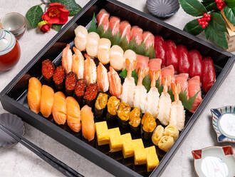 【華やかな盛り合わせ】豊洲市場から厳選したこだわりまぐろ・穴子・えび入り・安心の定番ネタ・素材にこだわる・手軽に出前寿司