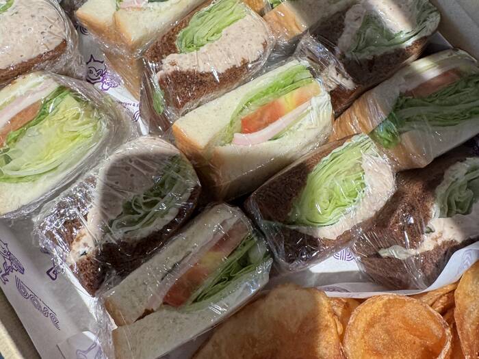 小ぶりのサンドイッチが一つずつラッピングされているがGOOD