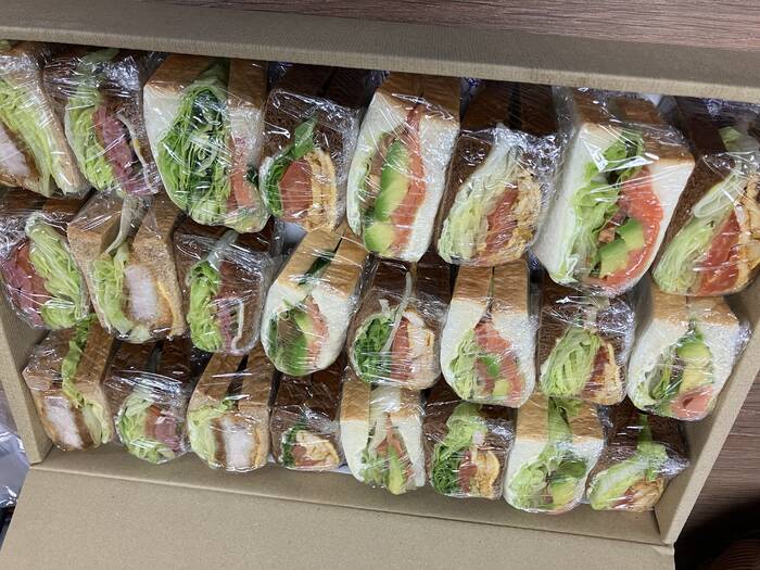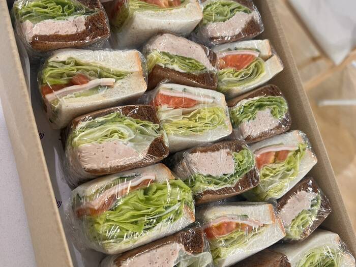 今回社内懇親会ではゲームを行ったりしましたが、その際も手軽に食べることができるサンドイッチは男女ともに好評でした。 -