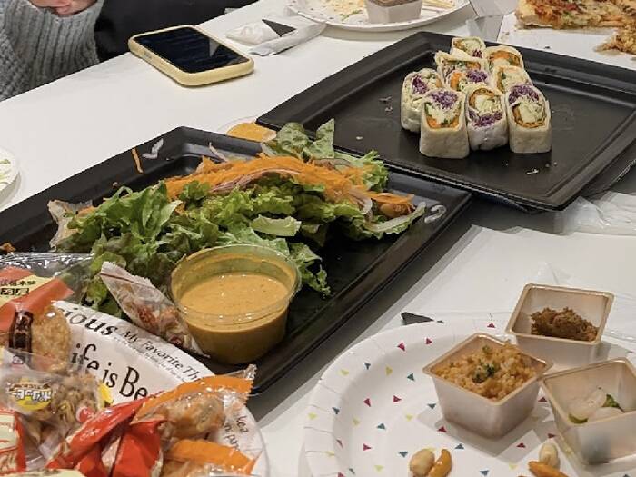 サラダ用のトングが入っていなかったので、各自お箸で取りました。