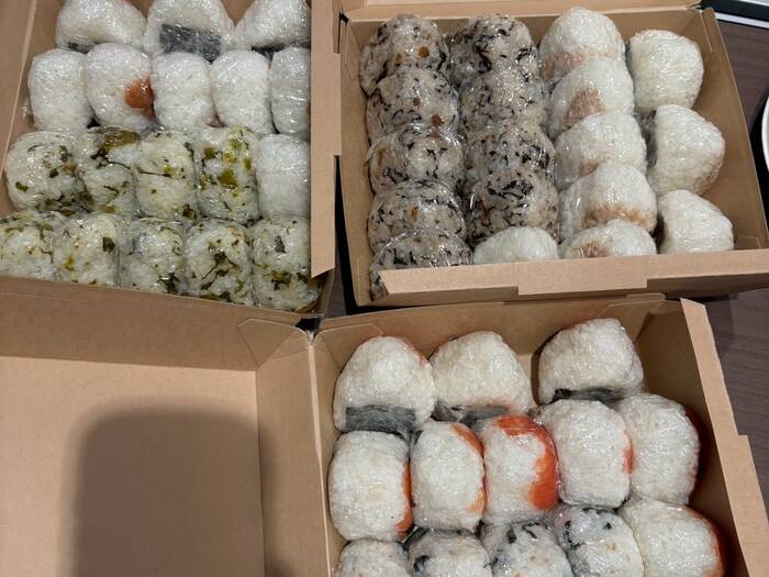 毎年、健康診断後の軽食に頭を悩ませていました。他のケータリングを注文した時におにぎりがあることを知り、今回使ってみたところ大きさもちょうど良く、具の種類も多く、好評でした。色々な具を混ぜて60個発注しましたが、結局人気は定番の鮭や明太子でした。次回の注文時の参考にします。
