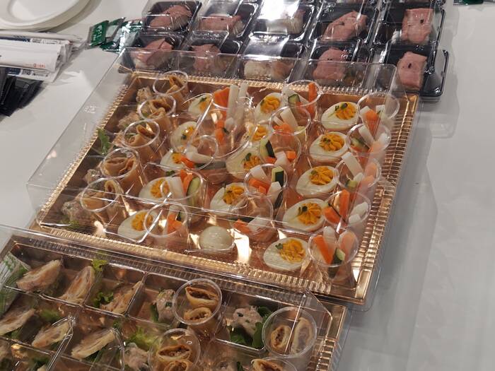 前菜、メイン、デザートまで自家製にこだわる「Chinese Deli 李」では、柔らかく仕上げた自家製ローストビーフ、春巻きや海老にら餃子、季節のフルーツ2色ゼリーが人気です。手作りのお料理をフィンガーフードにて、食用花やキャビアなどを添えて、【おもてなし】に最適なお料理に仕上げました。洋食と中華のマリアージュをお楽しみください。