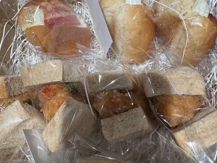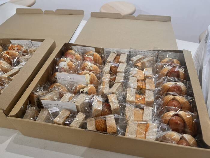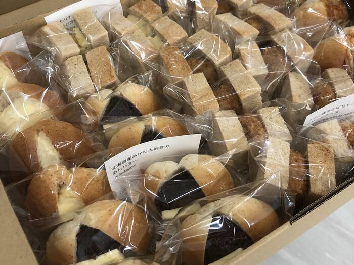 いろいろな種類のコッペパンが個包装で納品されます。