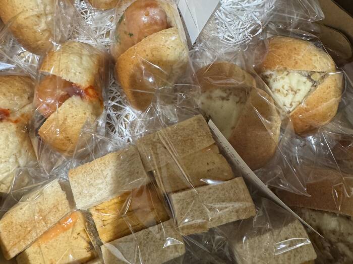 今回初めて利用させていただきました。サイズ感がちょうどよく、手に取る人がたくさんいました。またおかず系よりもあんバターやクリームのほうが人気ですぐになくなりました!