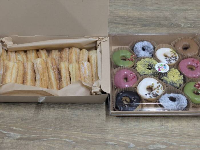 小ぶりなドーナツで、見栄えも味も良かったです。参加者からの評判も良かったです。一人2個と数に余裕があり、小分けなので急な人数変更にも対応できるので便利だと思いました。