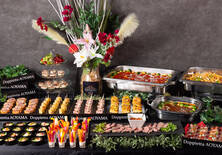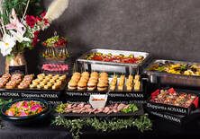 バーニャカウダ / パールモッツァレラとプティトマトのカプレーゼ / スモークサーモンとエビのアボカドムース / 季節のテリーヌ 赤ワインマスタード添え / 特製ローストビーフ カポナータ添え / ジャガイモのトルティージャ / 燻製カモのカナッペ / 生ハムとチェダーチーズのクロワッサンサンド / 魚介のシトラスマリネ / 【温製】イベリコ豚とパールモッツァレラのパスタ / 【温製】グリルチキンのトマト煮込み / 【温製】牛タンシチュー / 自家製ティラミス