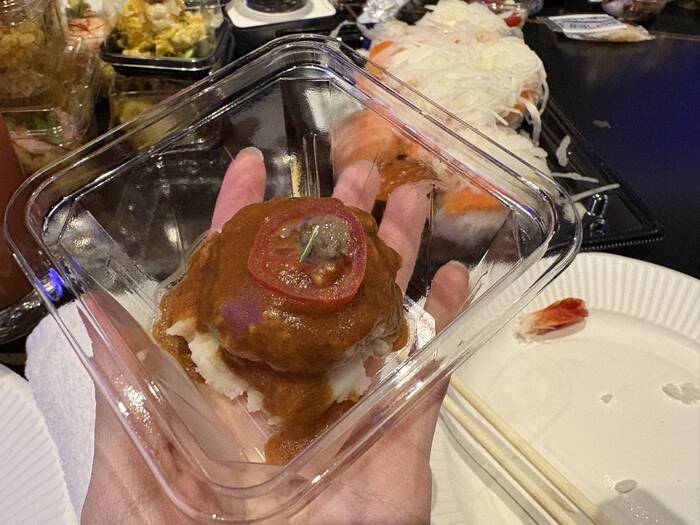 小分けにされており、本来飲食スペースではない会場で非常に食べやすく便利でした。