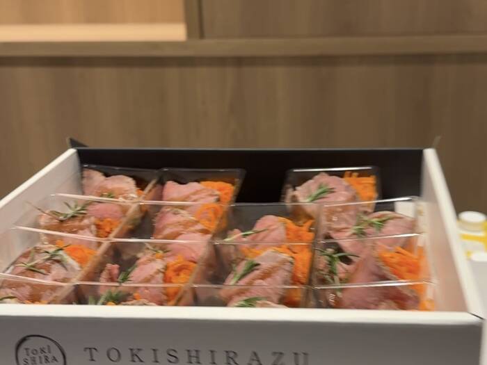 恵比寿TOKISHIRAZUでは、オリジナル紙箱をご用意。しっかりした紙箱の蓋には切れ目を入れ、蓋部分は取り外ししやすいようお作りしました。ならべるだけで、会議室や食卓がパーティ会場に!