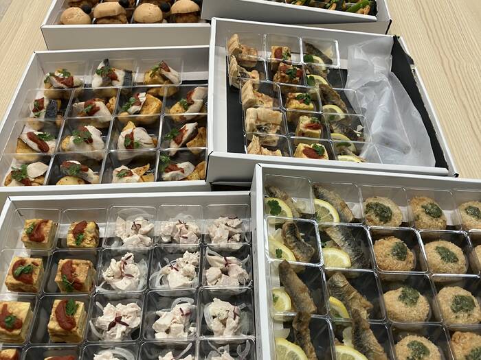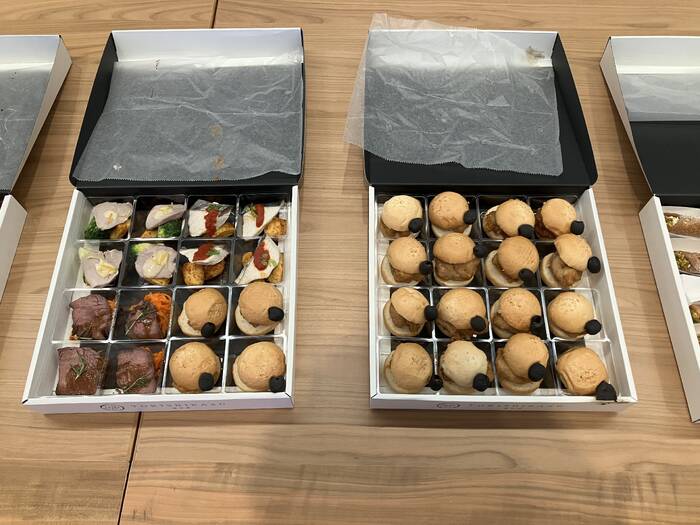 参加者一人あたり一人前分注文したわけではなく、少なめに注文し、立食で好きなものを取っていただく形を取りました。