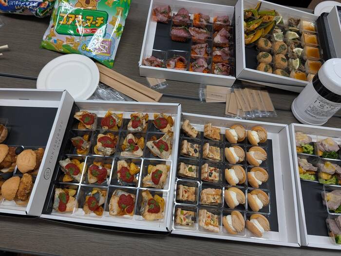 料理は小分けになっていて今時の懇親会にぴったり、味も美味しく、参加者からは大好評でした