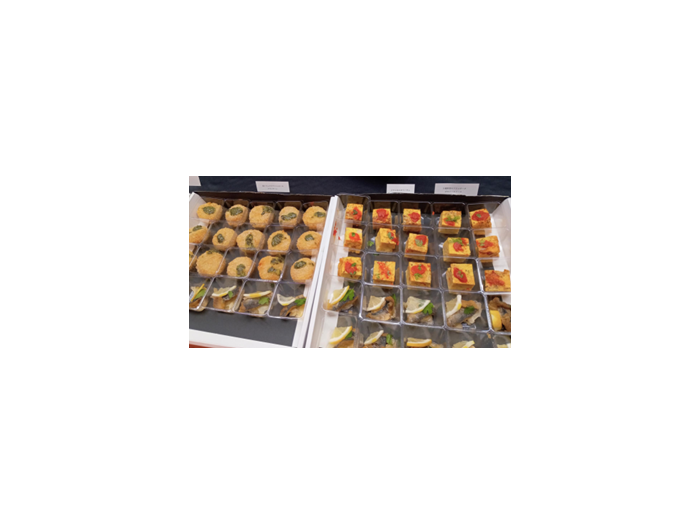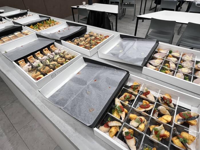 15名ほどの懇親会用に小分けのケータリング、そしておしゃれでおいしそうなものを探してこちらを見つけました。和風イタリアンとのことで、お肉お魚もあり、野菜の彩りもきれいで華やかなお食事でした。どれもとてもおいしく、男女ともに好評でした!