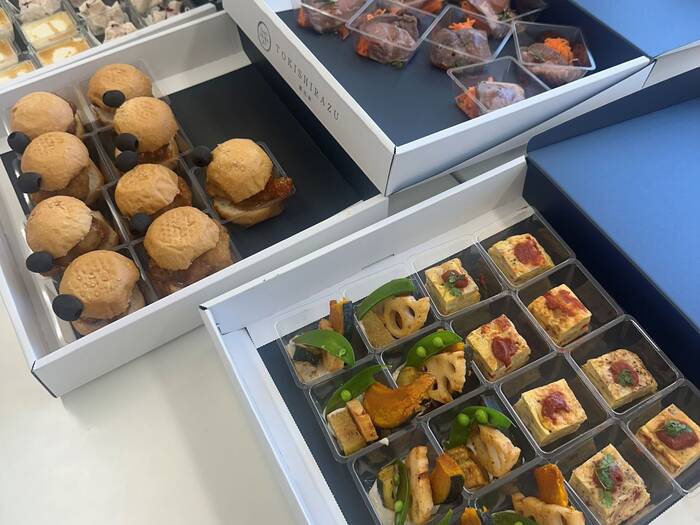 外国人(欧米人)向けの会議で利用しましたが、大変好評でした。リーズナブルで、ビジュアルもよく、そして美味しかったです。小ぶりなフィンガーフードですが、結構おなかもいっぱいになりました。あ!1点だけ。パンナコッタは見た目わからなくて、デザートとお料理が一緒のケースに入っていたのでお豆腐料理と勘違いしました。デザートは別ケースほうがいいかもです・・・面倒くさいことを言ってごめんなさい。でも また機会があったらぜひ利用したいです。ありがとうございました!