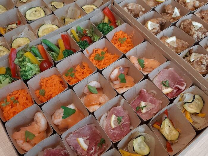 海外のお客様がグルテンフリー対応をご希望だったため、こちらのランチを選択しました。思ったより1個が小さかったですが、好きなものを選べるのでよかったです。男性には少し物足りないかもしれません。残った分は他部署の方に差し上げましたが、それも小分けのため好評でした。ドリンクも一緒にオーダーできるとよかったです。