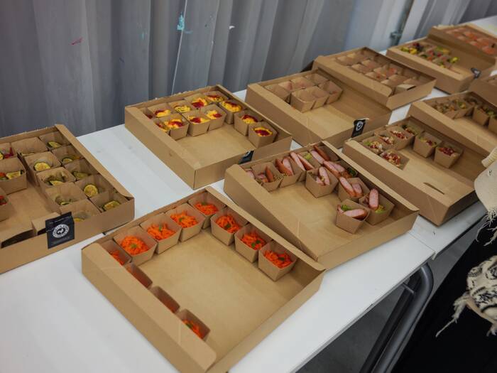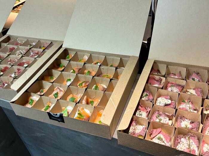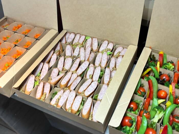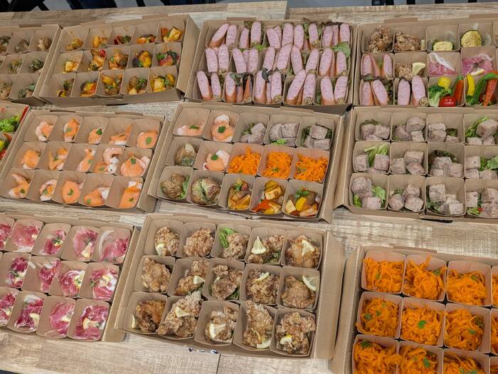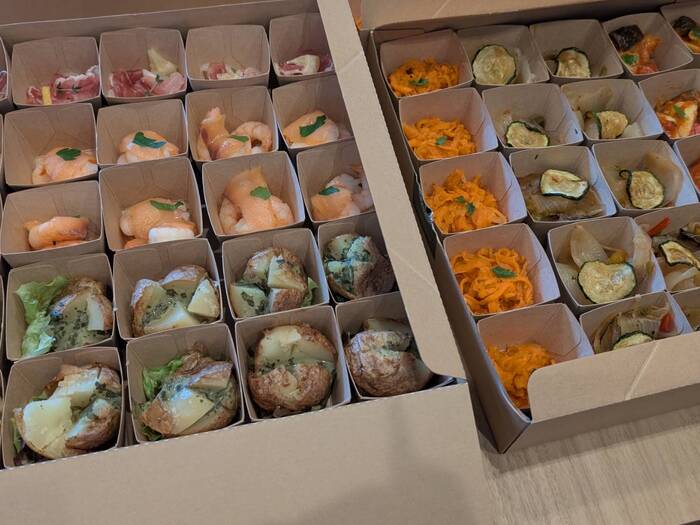 結婚式の茶話会で用いました。ケータリングと迷いましたが、一人ひとり確保出来るBOXなので衛生面でも良かった。片付けも楽に出来ました。皆さんから美味しいと好評でした。見た目も良い、味も良い、コスパも良い!また大きな会を行う時には、利用したいと思ってます。
