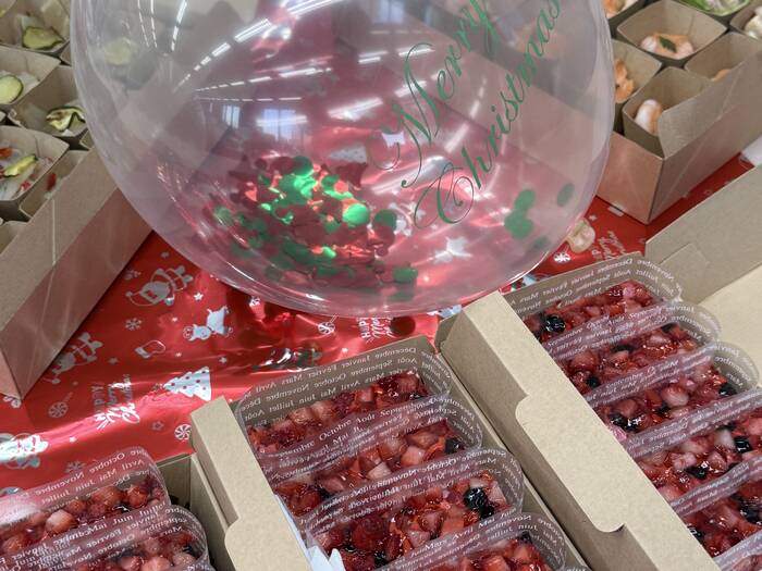 前に子供のクラス会で利用した時とても評判がよかったので、今回はママ会で利用させてもらいました。やはり小分けになっているのでみんなも取り分けに気を遣わなくて良いと言っています。今回はクリスマス用のデザートもついてお値段1人2500円とコスパも最強でした!