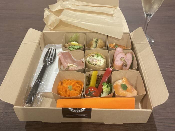 海外のお客様がグルテンフリー対応をご希望だったため、こちらのランチを選択しました。思ったより1個が小さかったですが、好きなものを選べるのでよかったです。男性には少し物足りないかもしれません。残った分は他部署の方に差し上げましたが、それも小分けのため好評でした。ドリンクも一緒にオーダーできるとよかったです。