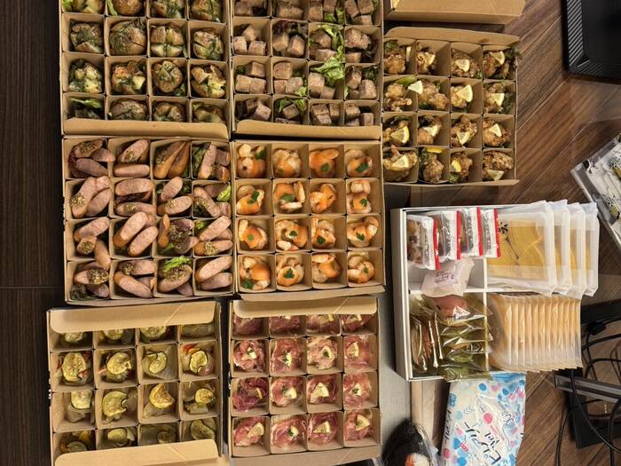 箱に詰められたお弁当と、今回の一個一個別々で取り分けていくビュッフェタイプとで悩みましたが