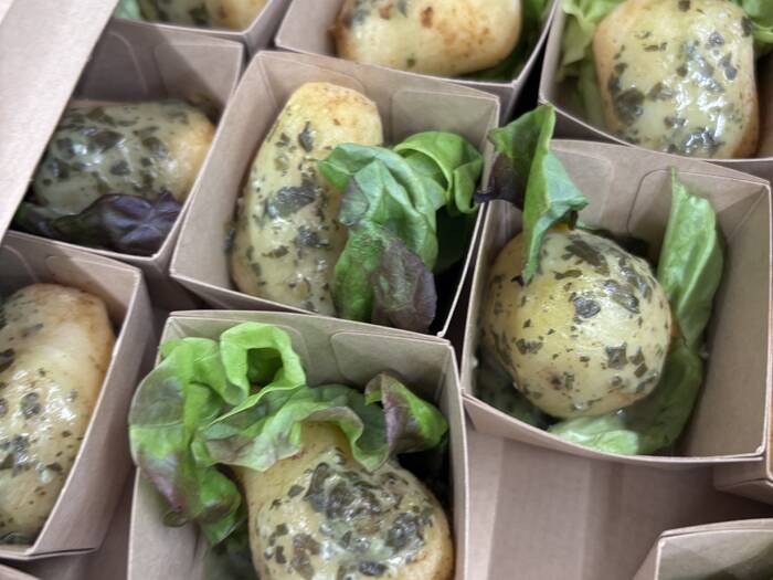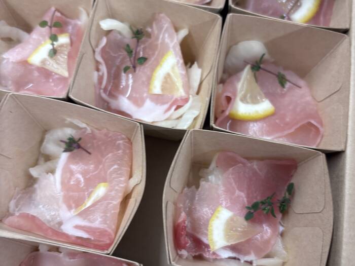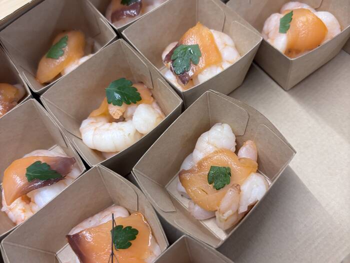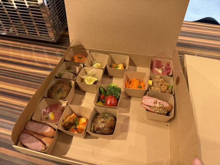1人分ずつのボックススタイルは、他の人に気を遣うことなく、会場内を持ち歩くこともできて、懇親会や交流会にぴったりでした。