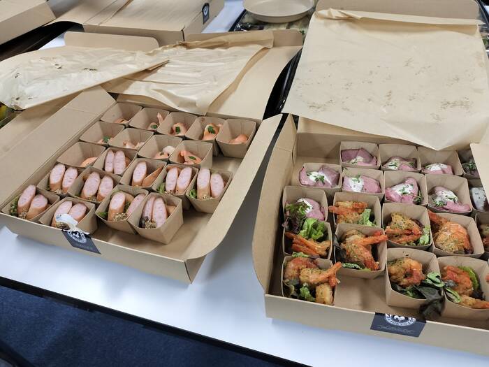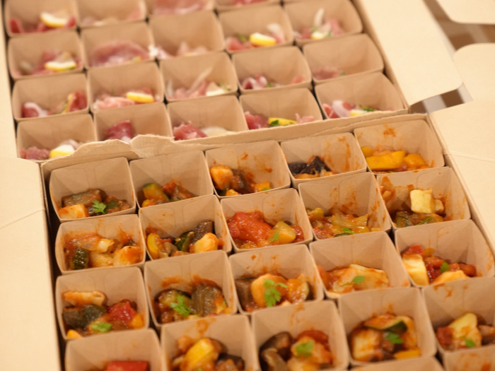 勉強会の後に軽い食事として準備させていただきましたが、種類も多く、色とりどりの内容で、テーブルが華やかになりました。普通のケータリングと異なり、一つずつ小分けになっていたのも、分ける手間がなく会話が弾むポイントだと感じました。