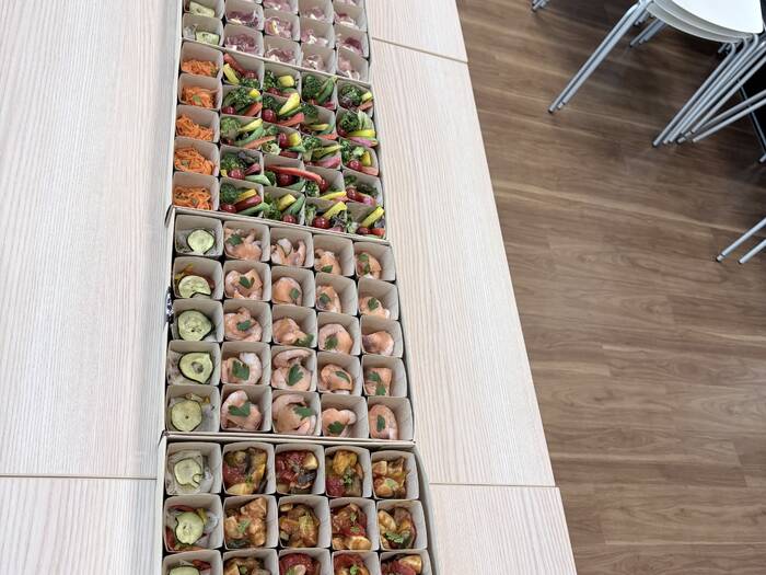 個別コップに食事が入っていたため、とりわけせずに済んで食べやすかったです。