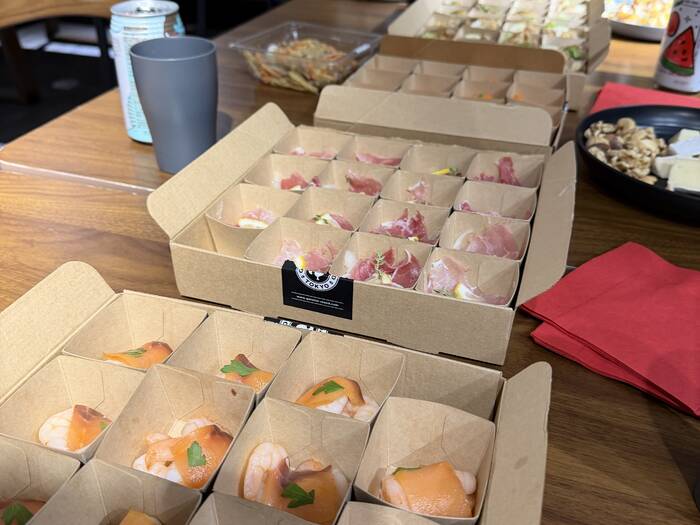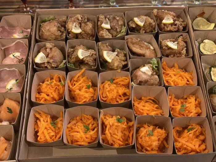 一人用にまとまっていて、BOXの中にフォークやおしぼりも入っていたので取り分けの手間がなくスムーズに会を進められました!