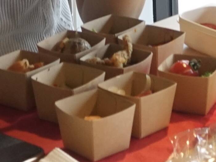 見栄えが良く、参加者に好評でした。小分けになっているため、各自取り分けが必要ですが、食べられないものを別の人がもらう…というのがやりやすかったのは良い点でした。