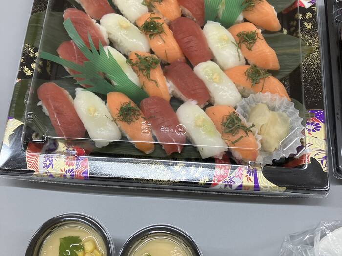 職場のランチ会で利用しました。握り寿司付きのプランの場合、他店では12時までの配送できるところがほとんど見当たらず、こちらの店舗を選択しました。うにく丼も評価が高く、プラン全体のボリュームも十分でした。ただし、3,300円/人のプランでは、一部大皿からの取分けが必要だったため、完全小分けのプランのほうが参加者の遠慮がなかったかな、と思っています。