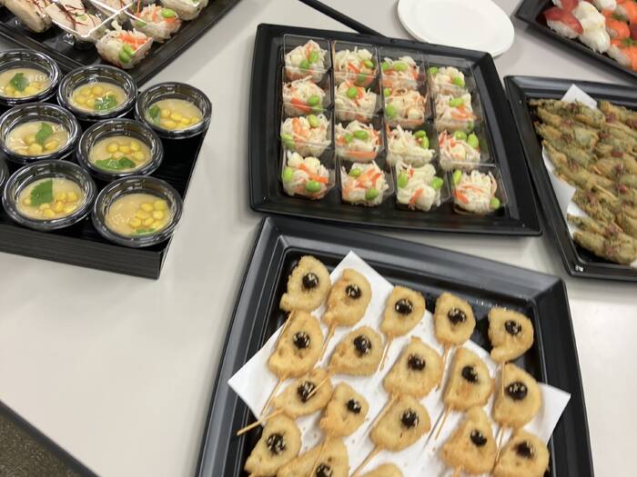 大学のセミナーの後の懇親会でのご利用です。寿司職人による現地握り・チェーフィング・ドリンクがセットになった、懇親会にぴったりなプランで歓談を盛り上げました。
