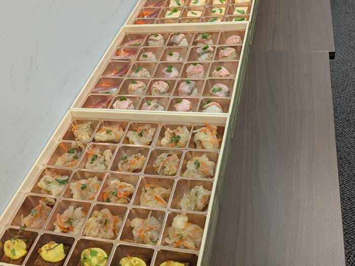 味が本当に美味しかったと参加者みんなに好評でした!!!会社のイベントでしたが、個食タイプで、いつもの立食スタイルよりも参加者は遠慮せず食べれて楽だったようです。