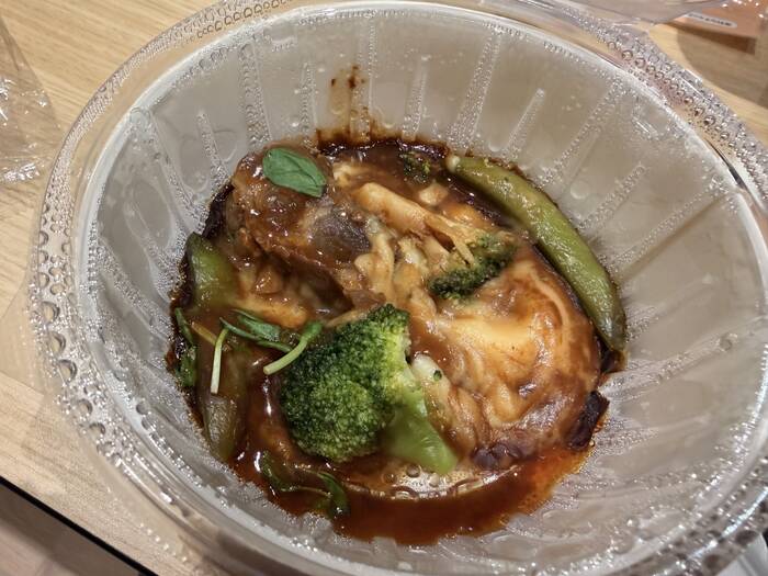 見た目も彩りよく、テーブルが華やかになりました。全体的には量が少なめ、ものによっては「これだけ?」と言うものもありましたが、私たちは年齢層が高めだったのでそれほど問題にはなりませんでした。お値段からしてローストビーフはおまけ程度かな?と期待していなかったのですが、しっかり2切れ入っていて美味しかったです。いちばん好評だったのは魚介のバルサミコ風味ちらしご飯で、お茶碗1膳分くらい食べたかったです。