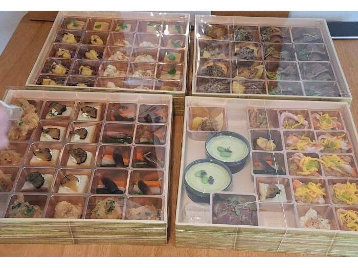 庭園散歩のあとの軽食で、折詰になったケータリングに皆さん感動し、声が上がりました。年配の方が多かったので量もちょうどよく、味も濃すぎず、今回のイベントにはもってこいでした。中身もくずれていたりすることがなく、準備が大変楽なので、また利用させていただきたいと思います。