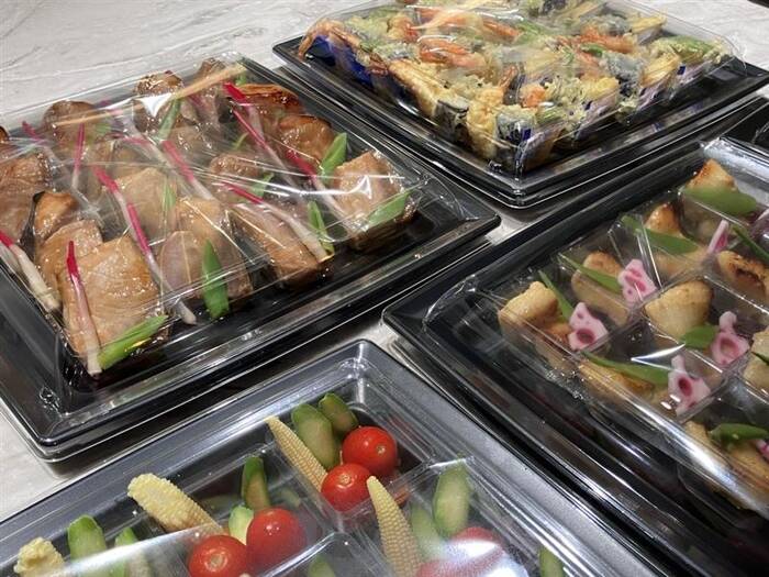 本格的な和食会席料理でした。容器も安っぽいベージュの箱が多いなか、こちらのお店は黒なので、料理も映えます。