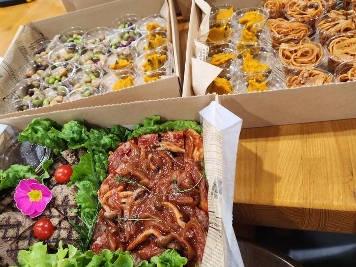 見た目も今っぽく、食材や味がわかりやすい、想像しやすいものをテーマに検索し、今回注文させていただきました。毎年料理が余ってしまうのが課題でしたが、今回は足りない!と苦情がでるくらいすぐになくなったので、次回からは量を追加して注文しようと思います(笑)