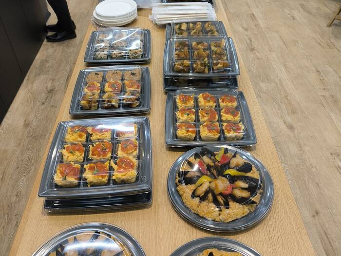 モダンなグレーの容器に色とりどりのお料理が並ぶ姿は写真に収めたくなるほど。洋風のお料理に中華のエッセンスを加えたパエリア風チャーハンなどの創作料理に加え、定番の中華料理をアレンジした海老チリのピンチョスなど美味しさに新しさをプラス!驚きや発見のあるお料理に会話が弾むこと間違いなし。美味しくお洒落にパーティを彩ります。