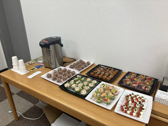 会場のセッティングから片付けまでスムーズに対応してもらいました。 お料理も綺麗な見た目で女子職員からも喜ばれました。また、男性職員からは揚げ物系の料理がとてもおいしいと評判は上々でした。70人程度で1時間ほどのパーティを想定して依頼しましたが、ボリューム的にも丁度良かったかもしれません。完食でした。食べ盛りの男性職員には物足りなく感じたかもしれませんが、アルコールがあれば(ノンアルコールで開催しました)十分だと思います。