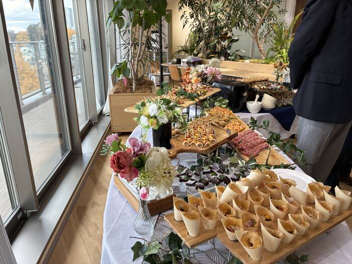 料理も立食形式に相応しい盛り付けで参加者もスムーズに手に取ることができました。