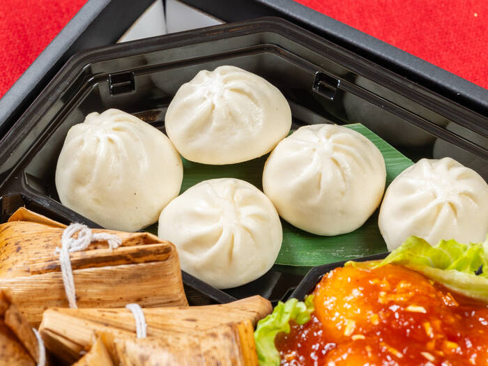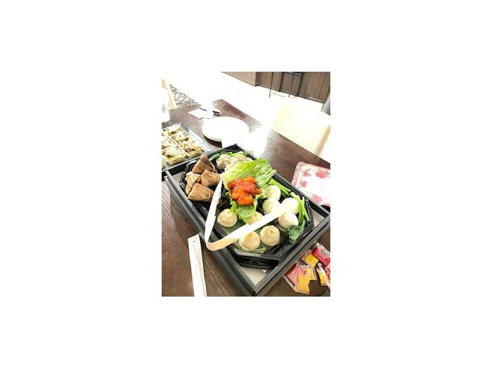 お弁当のように、箱についた紐を引っ張ると、チマキや小籠包といった点心を温めることができて、もくもくと上がる蒸気にもイベントが盛り上がりました。味もおいしくて、みんな大喜び。小分けにされた冷菜は見た目も美しく、食べやすくて最高でした。ひとつだけ残念だったことは、野菜のディップが子どもには少し辛かったようです。どこかに書いてあったのかもしれませんが、オーダー時に子どもにも食べやすいかわかるとありがたいです。