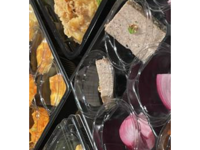 各プランの副菜は小分け容器でご提供するので、パッと手に取ることができます。どれもフレンチの職人が丁寧に作り上げたお料理ばかり。ミートローフにローストビーフ寿司、デザートのガトーショコラ…会話やお酒を楽しみながら手軽につまめて会話も弾むこと間違いなし!