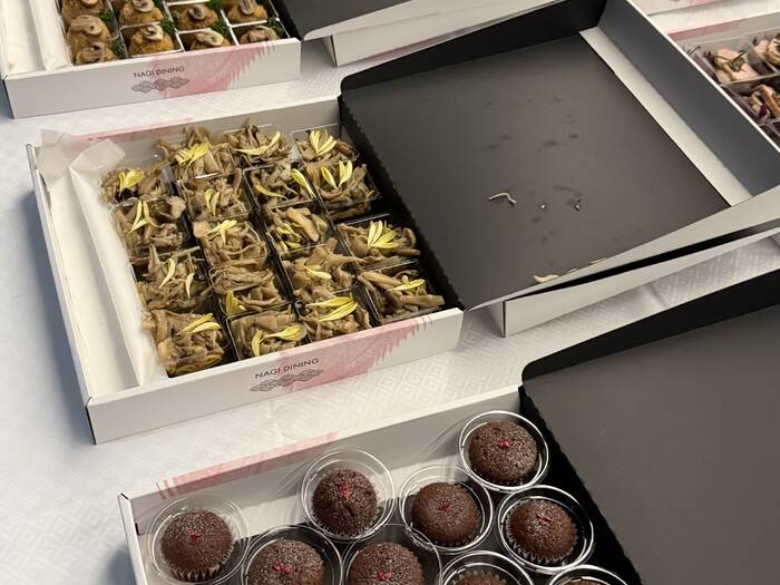 横浜で人気のイタリアンとフレンチの職人の和洋折衷オードブル!お洒落な魚のロゴのオリジナル紙箱にたっぷりの品数で、全品小分けのオードブルをお届けします。釣りたての鮮魚で作るボリューム満点の温かいお茶漬けもなんとお一人様ずつお届け!!NAGIならではの楽しい和洋折衷フルコースをリーズナブルな価格から