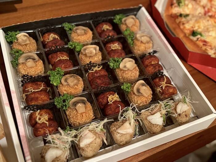 今回は8名で会社内の語学会のXmas会で利用。例年、飲み物・食べ物は近くで買い出しにして予算を押さえていましたが、幹事の負担が大きいので、今回初発注でした。8名だと最低単位より少なかったので10名でオードブルプラン NAGI 小分けスタンダード・ルーチェを。小分けしてあるし、一つ一つがかわいいので、その場がぱっと明るくなり、味もよかったので参加者からかなり高評価です。8人のうち若い男性が一人いたので、ぎりぎり食べ切った感じなので、人数分で十分な量です。 個人的には小さいおにぎりみたいなのだけちょっとパサパサしてたかな。後は一工夫されていて美味でした。