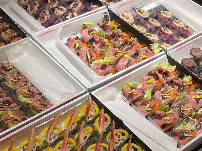 どの料理もクオリティが高く、また小分けになっており食べやすかったです。特にローストビーフとおにぎりが美味しかったです。また皿・箸もついており、別途手配不要で楽でした。