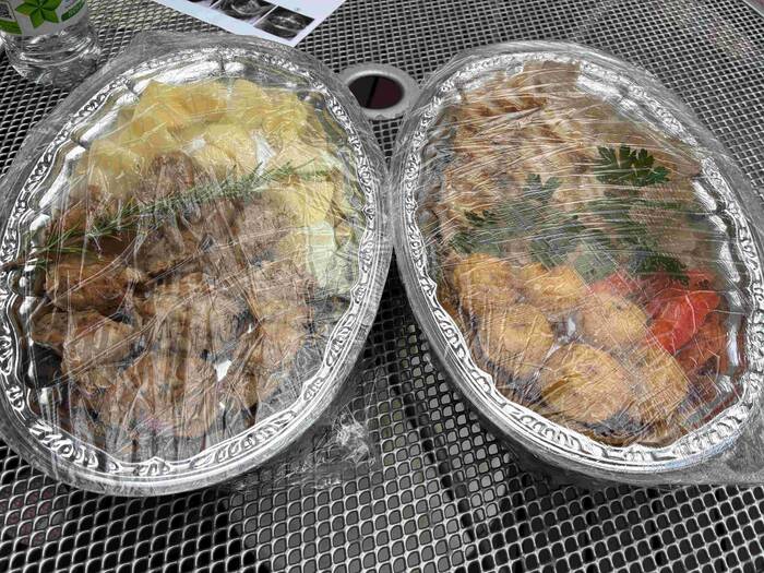 温かい料理ということで期待していたら冷たいものが届き最初は驚いたけど、よく見ると水で反応して高温になるパックが同梱されており、その場で温めることができて、美味しい肉料理が楽しめました。