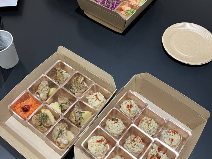 お惣菜は個包装になっていて、とても分けやすかったです。片付けもとても楽で、また利用したいと思いました。 -