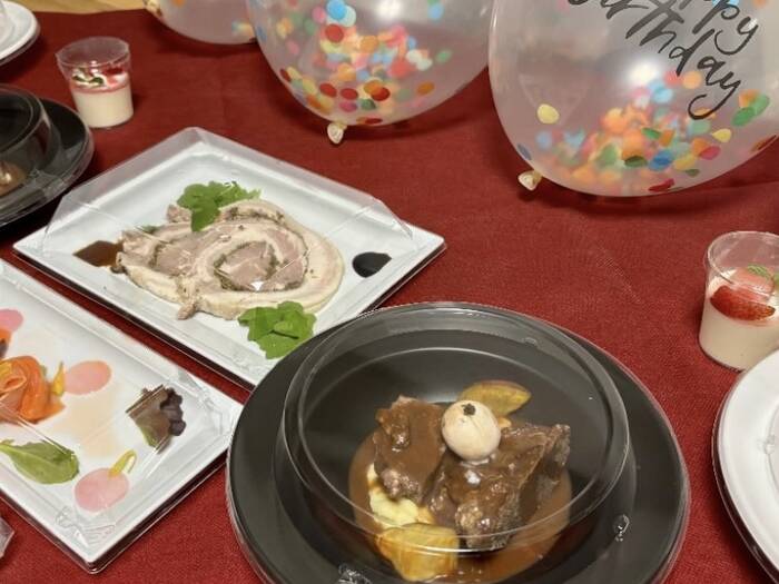 子供がまだ小さいので、寝かしつけた後に記念日のお祝いでいただきました。届けてくださった方がとても丁寧で感じが良く、お食事もどれも美味しかったです。また機会があれば利用したいと思います。