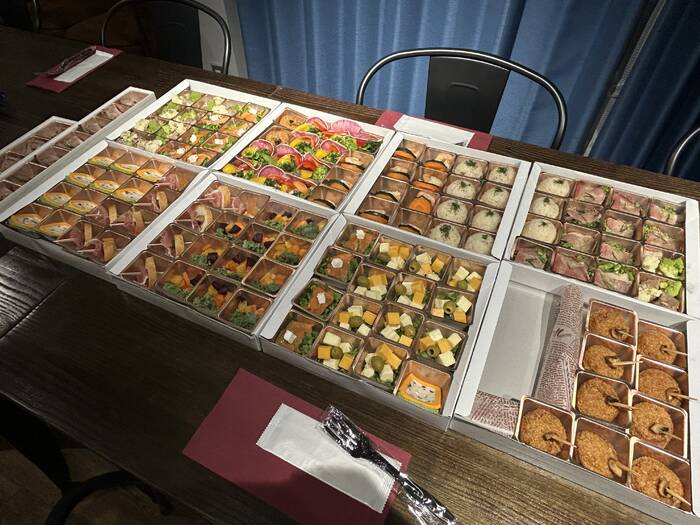 小分けになっていて別皿への配膳も不要、フォークとおしぼりなどもついているため企画者としてはとてもありがたいです。
