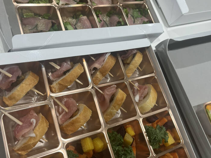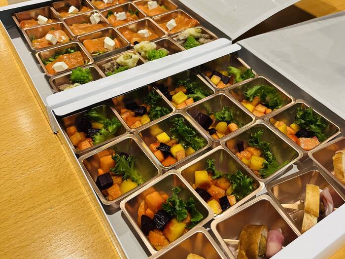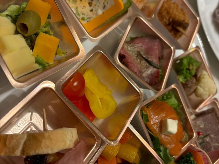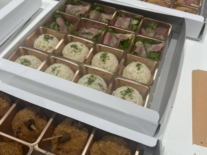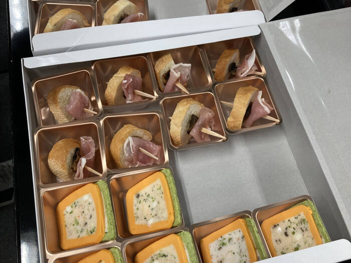 まず、デリバリーを担当いただいた方がとても丁寧で懇親会場まで、オードブルを丁寧にお運びいただきました。
